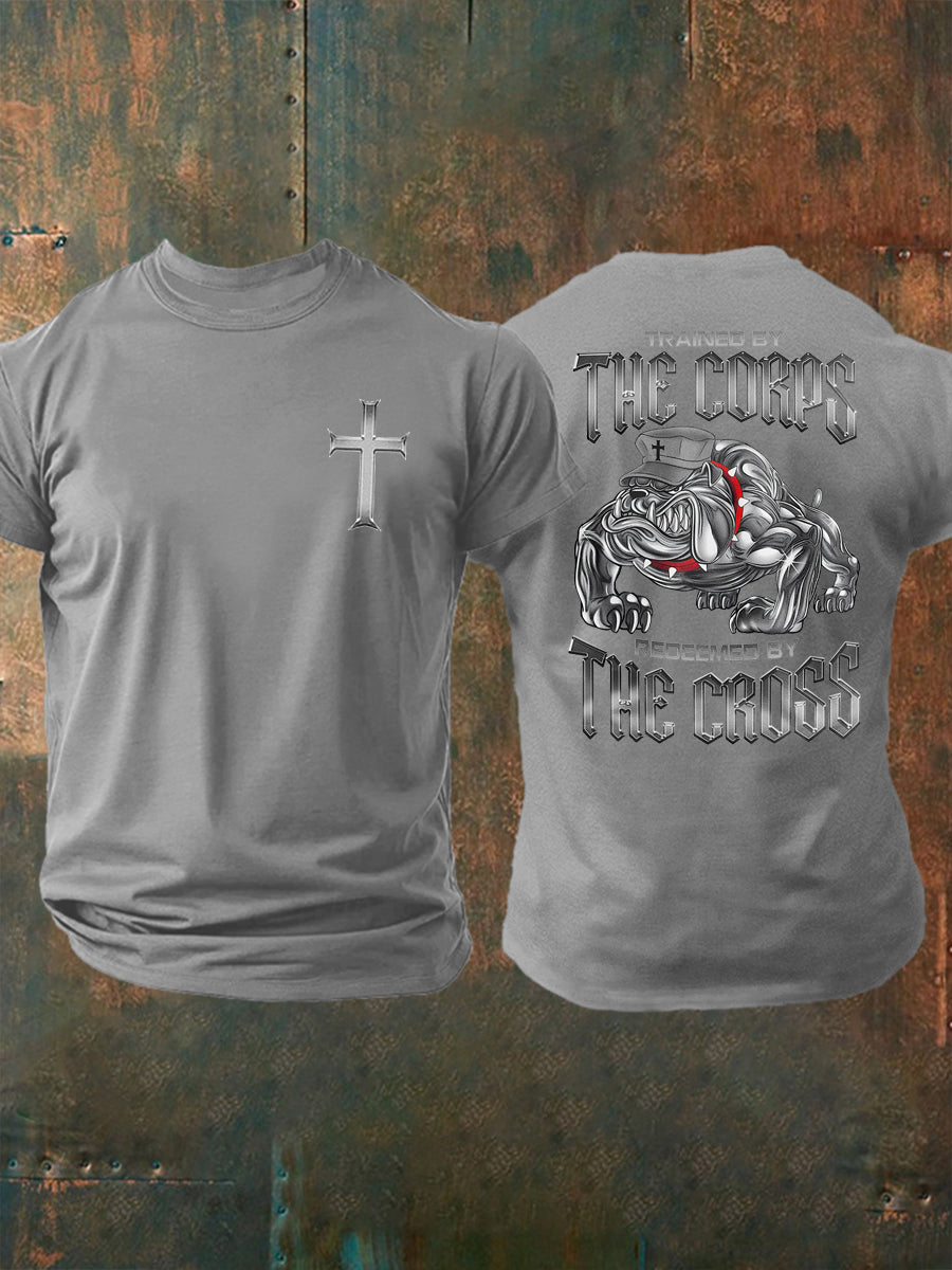 Men's Trained By The Corps Redeemed By The Cross Printed Casual T-shirt