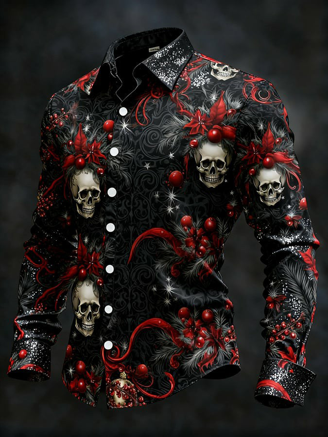 Men's Vintage Christmas Skull Long Sleeve Shirt